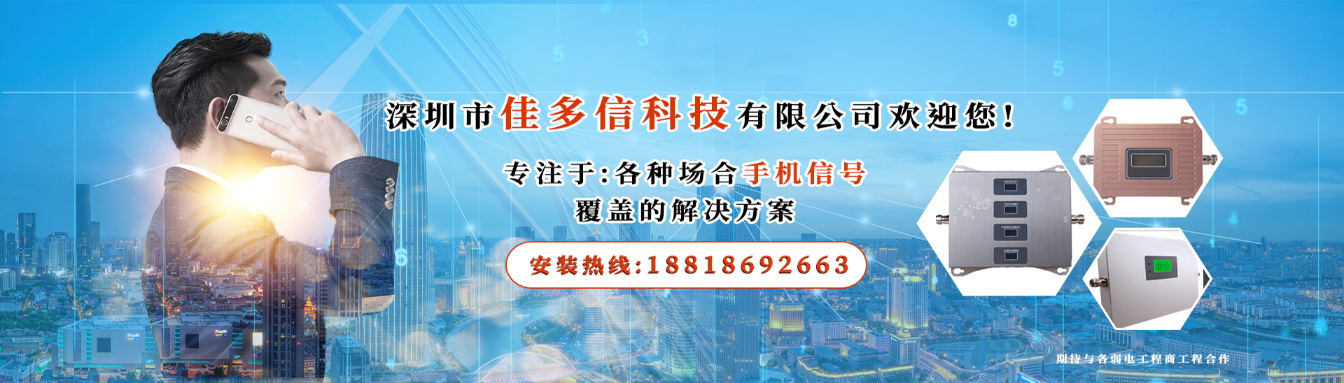 ? ? ? ? 深圳市佳多信科技有限公司、坐落于廣東省深圳市龍崗區(qū)龍崗中心城、自2013年成立至今、已發(fā)展成為一家集移動通信網(wǎng)絡信號覆蓋工程專業(yè)團隊、適用于各種場合包括廠房、辦公場所、地下車庫、娛樂場所、電梯、別墅、隧道、山區(qū)等...手機信號放大室分覆蓋工程服務商!